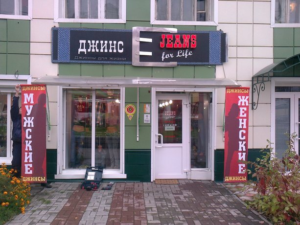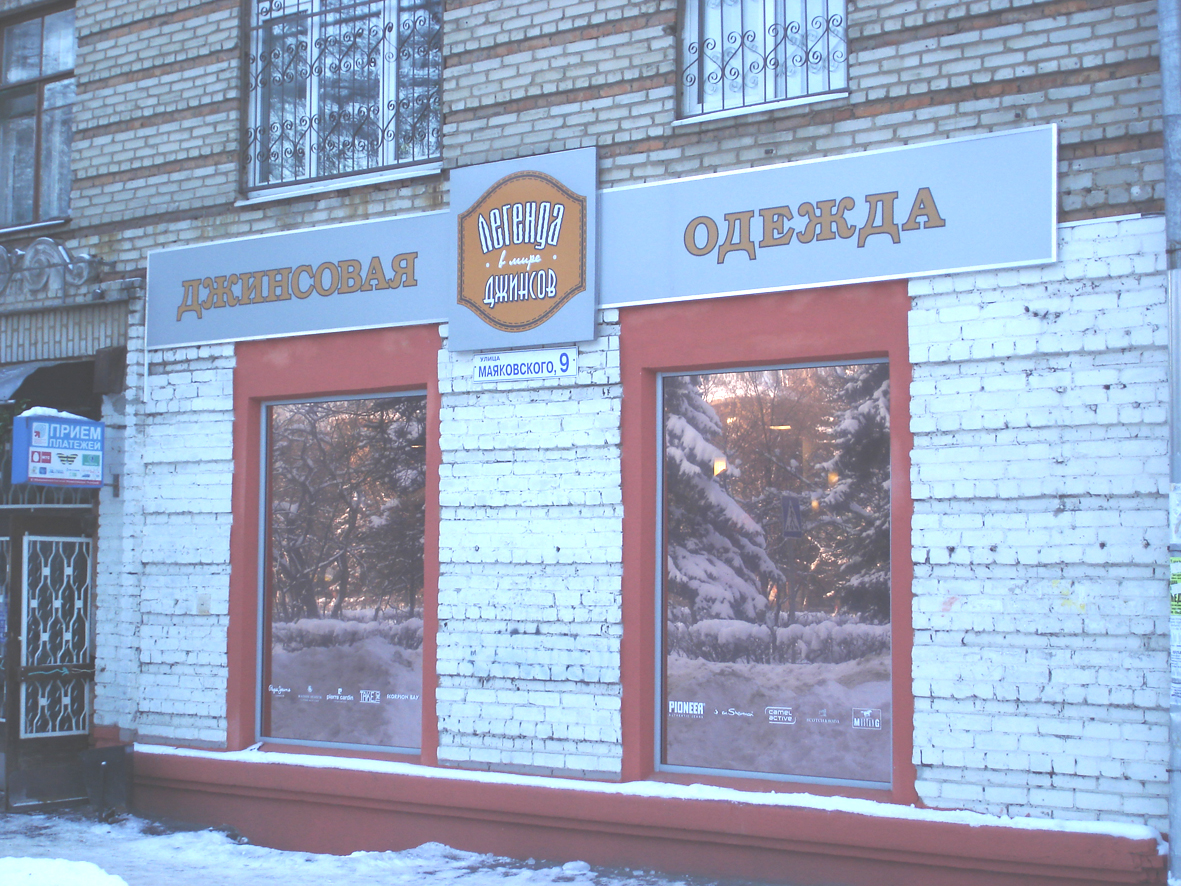 Важная задача рекламной вывески джинсов – сориентировать покупателя относительно ценовой категории магазина. В остальном, специфика товара предоставляет полную свободу творчества и выражения.