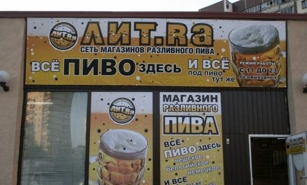 Вывески пивных магазинов известны давно. Еще в прошлых веках на тавернах изображали пивную кружку с высокой шапкой пены. Этот логотип и стали использовать в дальнейшем. В наши времена кружку заменили на стильный пивной бокал. Но времена рекламы в прошлом и сейчас рекламировать пиво запрещено по закону. Владельцы вынуждены менять вывески пивных магазинов. При этом такая вывеска должна суметь донести до прохожих информацию об ассортименте магазина. В ход идут различные ухищрения. Сама вывеска модифицируется и представляет собой обычную строгую панель с названием магазина и логотипом.